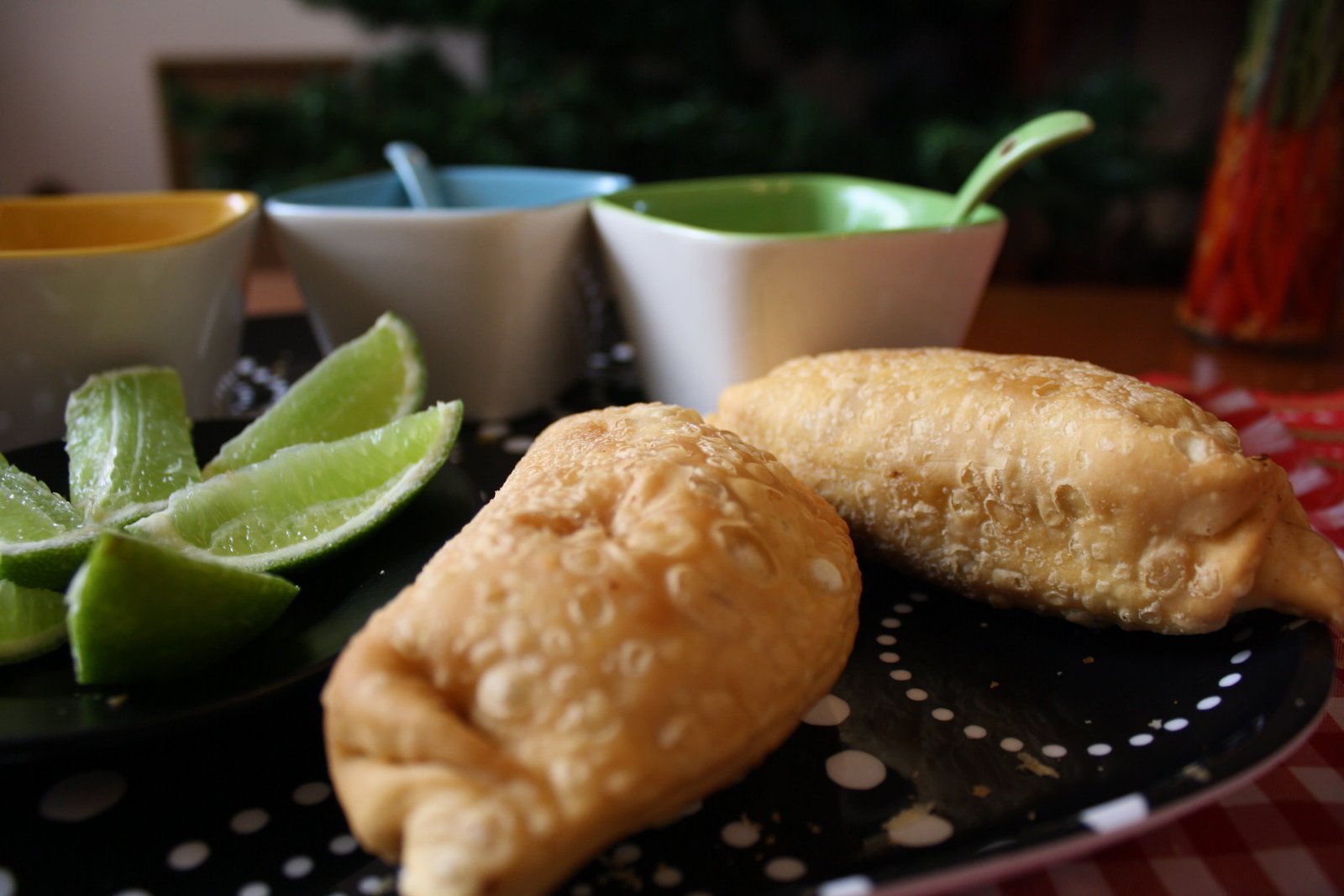 Deliciosa empanada de masa de harina de trigo, con finos trozos de pollo desmechado, condimentado...