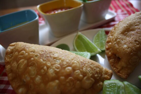 Deliciosa empanada de masa de trigo, con trozos de queso, salchicha y granos de maíz tierno, condimentado con especias naturales.